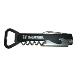 These custom savanna bottle openers are essential for any beer, cider, or wine lover. The sleek black and metal design adds a touch of sophistication while the durable material ensures long-lasting use. Easily open bottles with ease and style with this must-have kitchen tool.