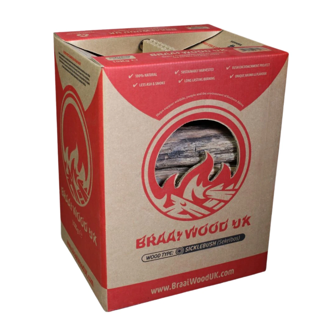 The Sekelbos tree is a spiny deciduous tree that grows up to 3.5 m in height in hot climates. The dead fallen branches dry naturally in the hot desert sun making this dense hardwood the perfect fuel for braai’s, BBQ’s and fireplaces. This wood is very well known for use with potjies and the natural oil enhances flavors of the meat you are cooking.